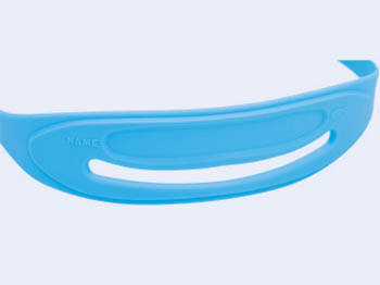 這次設計的特殊頭帶設計,在後側橡膠做了一個加寬設計,並且上面有一個防滑效果的凸出設計,主要是因為這一年齡的女孩頭型大小不一,有些小女孩非常好動,但是卻因為頭型較小,泳鏡比較容易滑落。